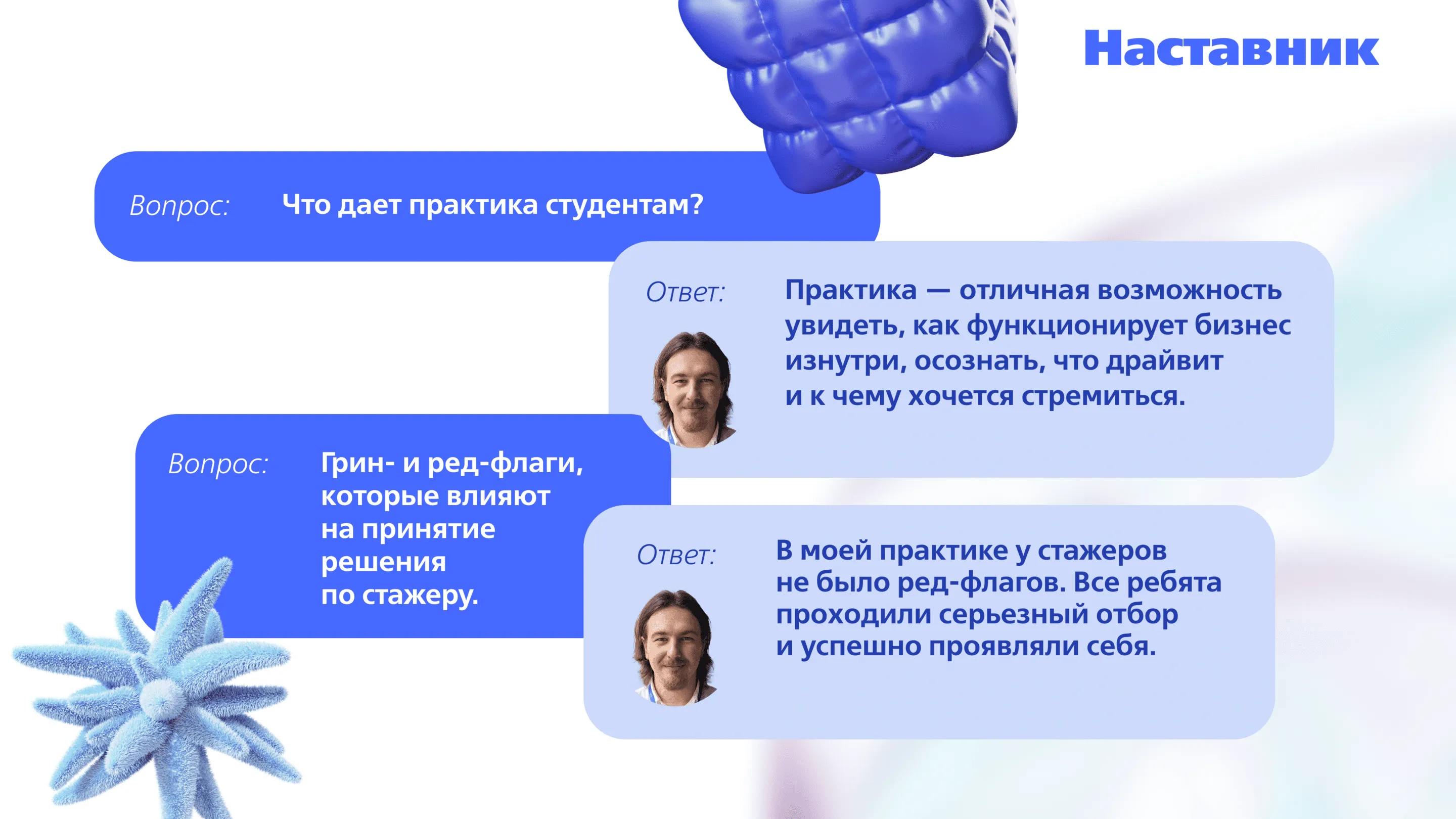 По итогам проекта лучших студентов пригласили на стажировки и практику. В статье делимся их историями, расскажем про проекты, впечатления от работы и обратную связь от наставников.