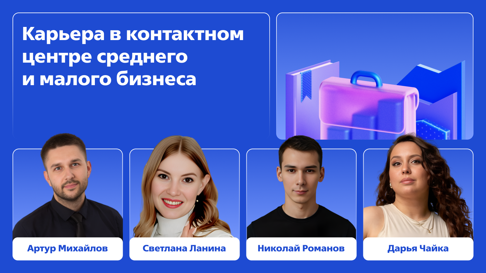 Что общего у руководителя отдела дистанционной голосовой поддержки, руководителя проекта аналитики и руководителя группы продаж? Ежедневно они помогают команде в решении значимых вопросов для клиентов среднего и малого бизнеса, каждый из них стремится к развитию и, конечно, все они начинали свою карьеру с позиции оператора контакт-центра.